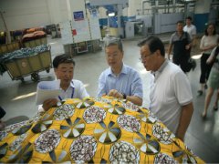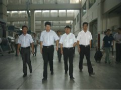 中国纺织工业联合会会长孙瑞哲(左一)一行在视察,指导企业发展